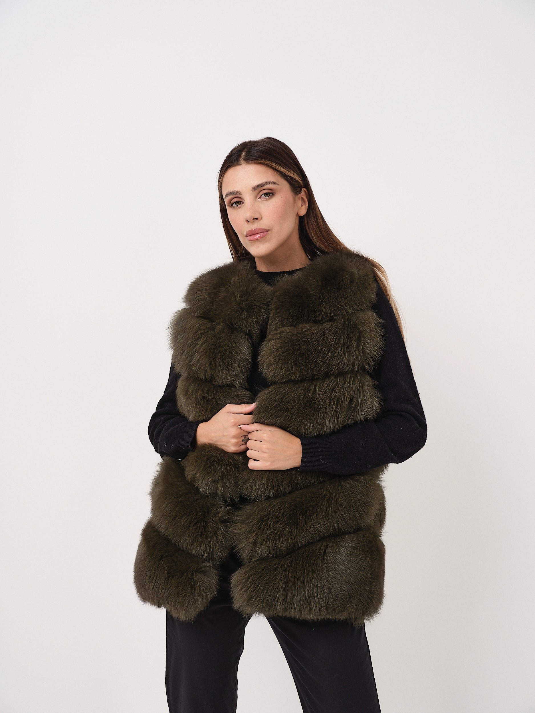 Fox fur vest with an elegant and sophisticated design.