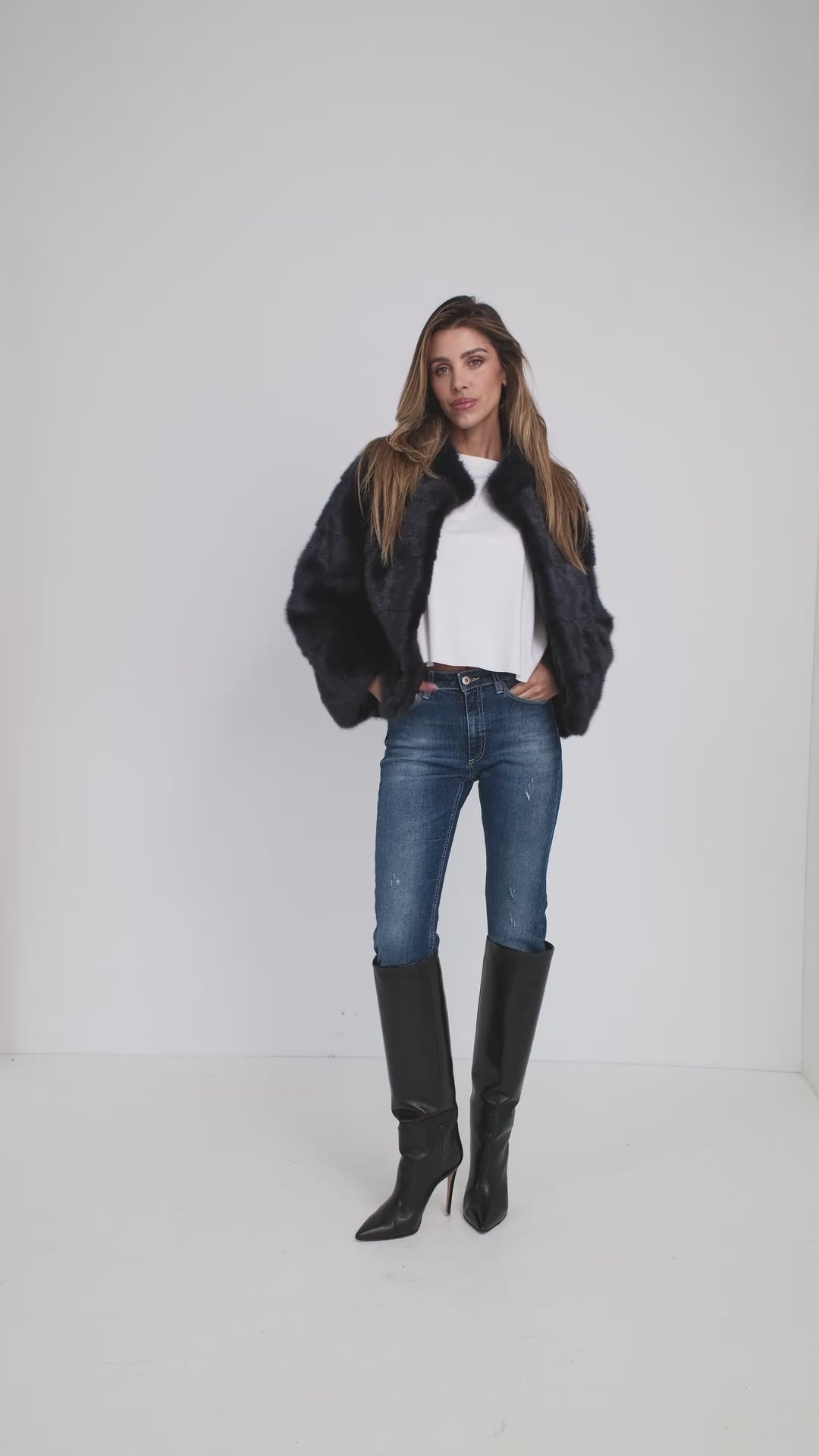 Nuestro refinado abrigo de visón representa la combinación perfecta de elegancia y confort. Confeccionada con materiales naturales de alta calidad, esta chaqueta presenta un pelo suave y voluminoso, capaz de proporcionar un calor envolvente incluso en los días más fríos.