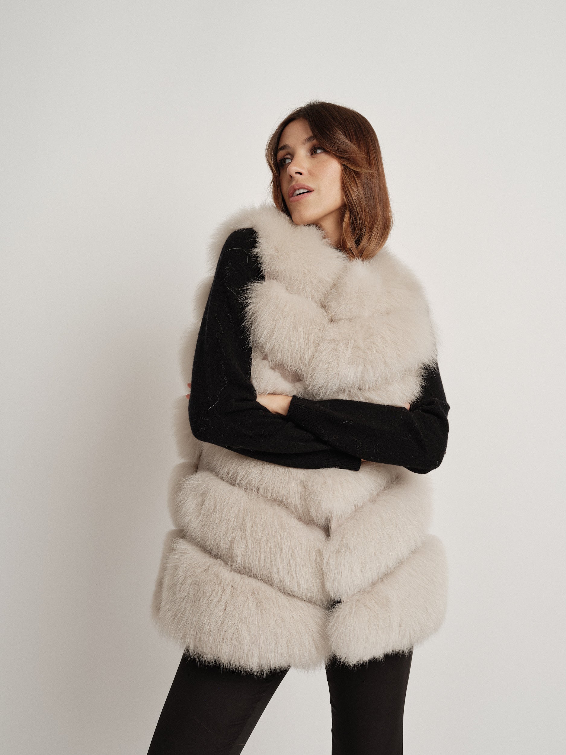 Smanicato in pelliccia di volpe dal design elegante e sofisticato.